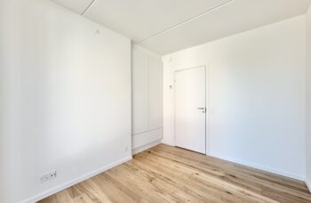 Dejligt stort soveværelse, med indbyggede skabe samt godt gæsteværelse/kontor hvor der er plads til seng/sovesofa, skrivebord m.m. I værelset er der opsat 1 fast skab. På 3 salen er der skråvægge i værelserne.